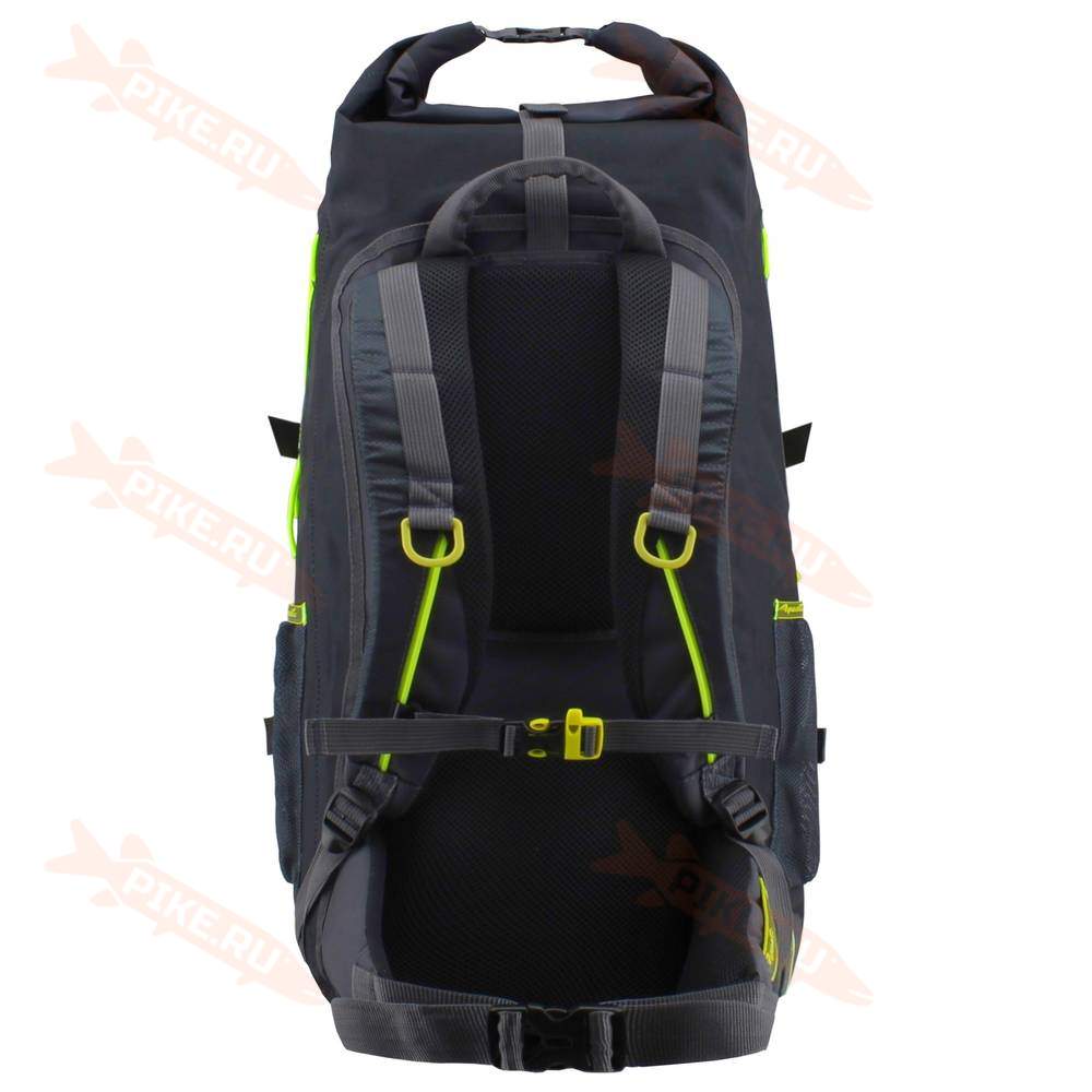 Вход в основной объём закрывается скруткой с дополнительной фиксацией, как на классических гермомешках, что обеспечивает полную герметичность рюкзака.