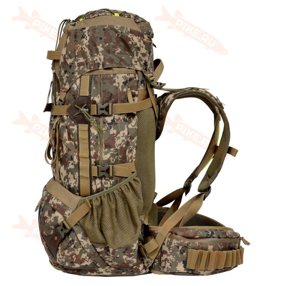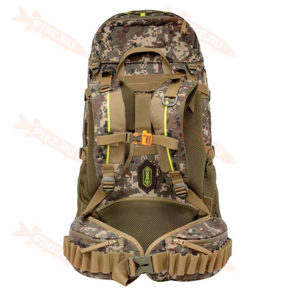 Пояс с дополнительными карманами и патронташем позволяет эффективно перераспределять нагрузку, а конструкция с регулируемой подвесной системой распределяет вес между плечами и бедрами.