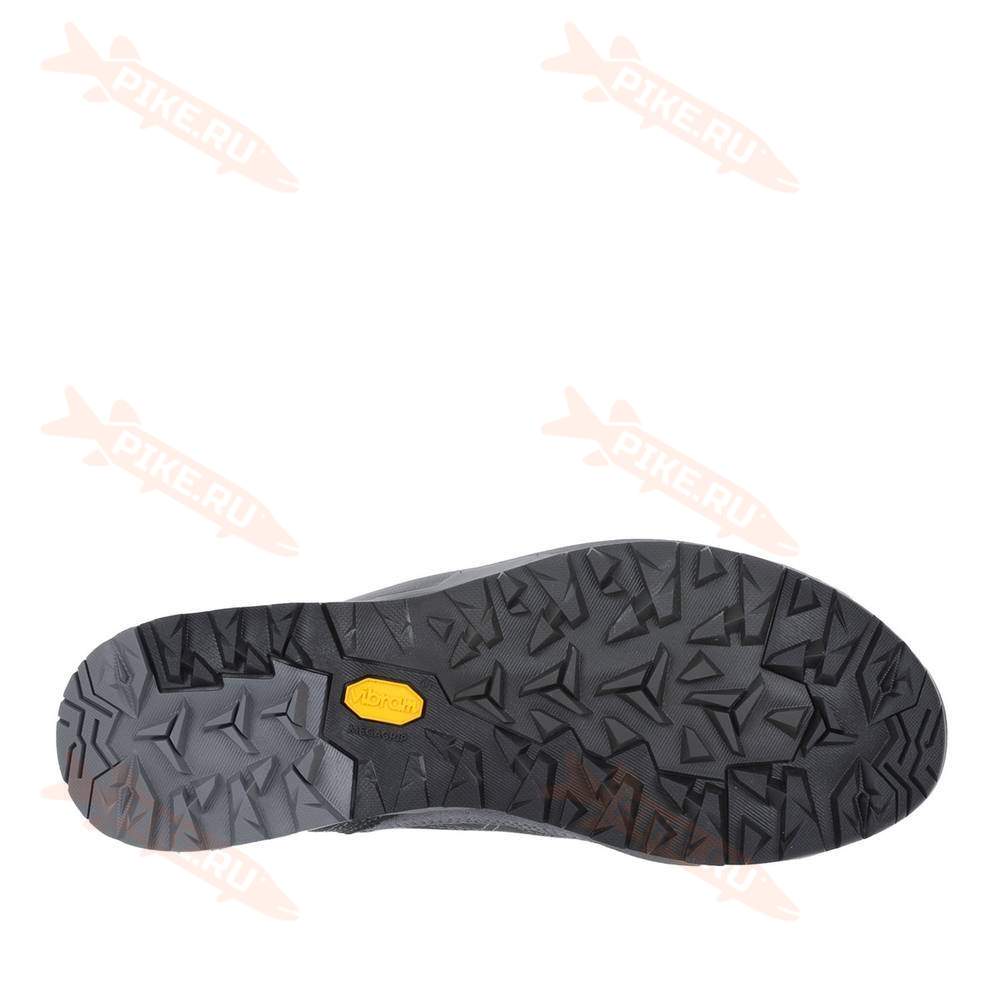 Мысок дополнительно усилен накладкой из TPU. Слой EVA низкой плотности в области пятки обеспечивает хорошую амортизацию и дополнительный комфорт. Внешняя подошва Vibram Megagrip имеет особый, более вязкий состав резины, благодаря чему обладает хорошим сцеплением даже на мокрых поверхностях.