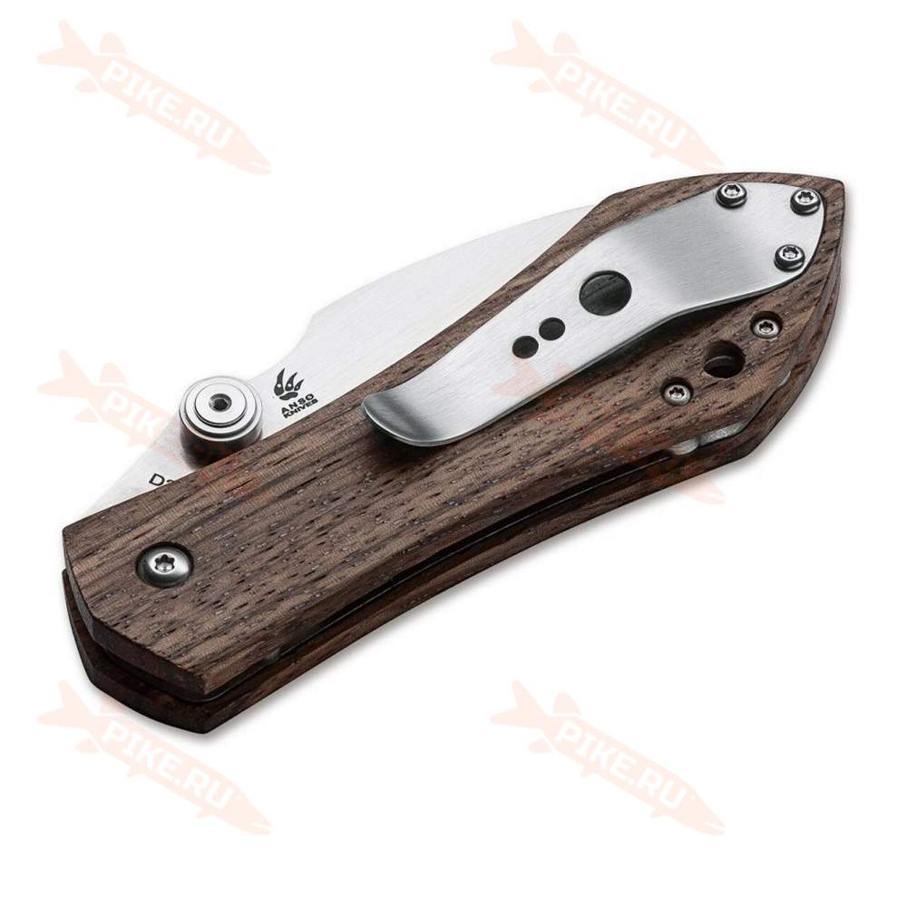 Нож Boker Anso 67 Pro — это прочный складной нож с клинком из стали D2, который уникальным образом сочетает в себе надёжность и простую конструкцию. Характерные шпеньки для открытия с обеих сторон имеют большие размеры и могут быть при желании сняты. Рукоять сделана из дерева, что придаёт ножу стильную и строгую внешность.