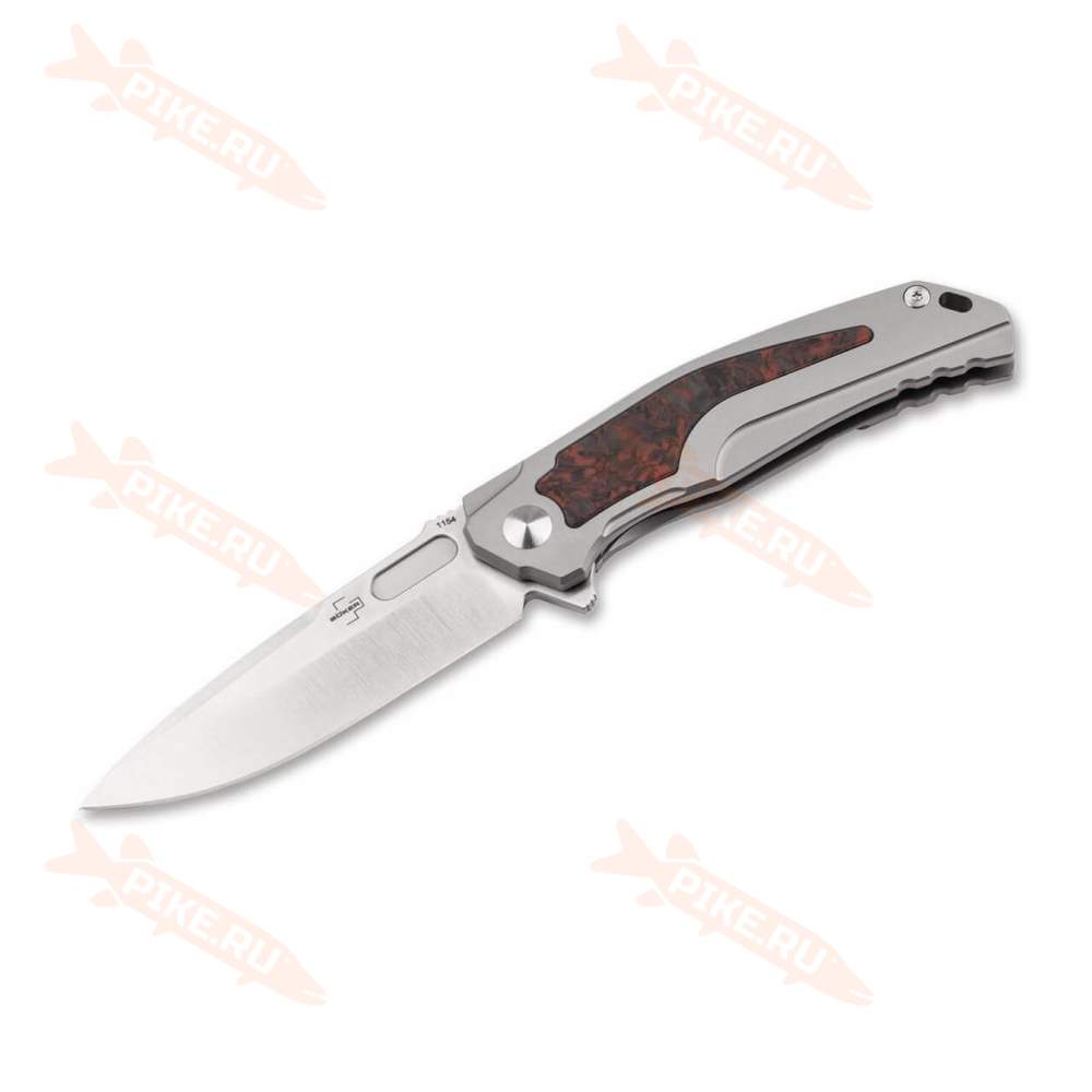 Нож Boker Aphex Mini оснащён отверстием для темляка, съёмной титановой клипса и высококачественным нейлоновым чехлом для хранения.