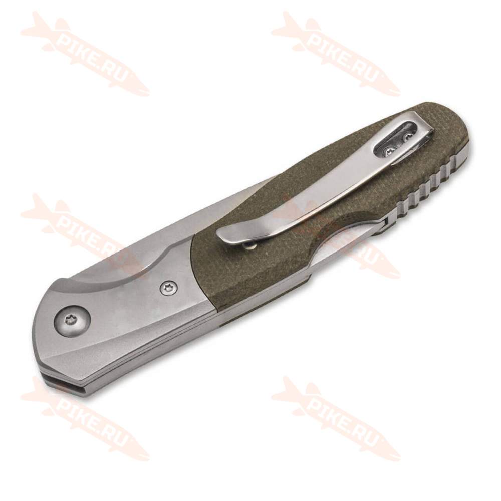 Рукоять из микарты — это конструкционный композитный материал, представляющий собой слоистый пластик на основе ткани и полимерного связующего вещества. Он прочный, не впитывает ни воду, ни запахи, тактильный и высоко декоративный. Кроме того, текстолит хорошо переносит значительные перепады температуры.