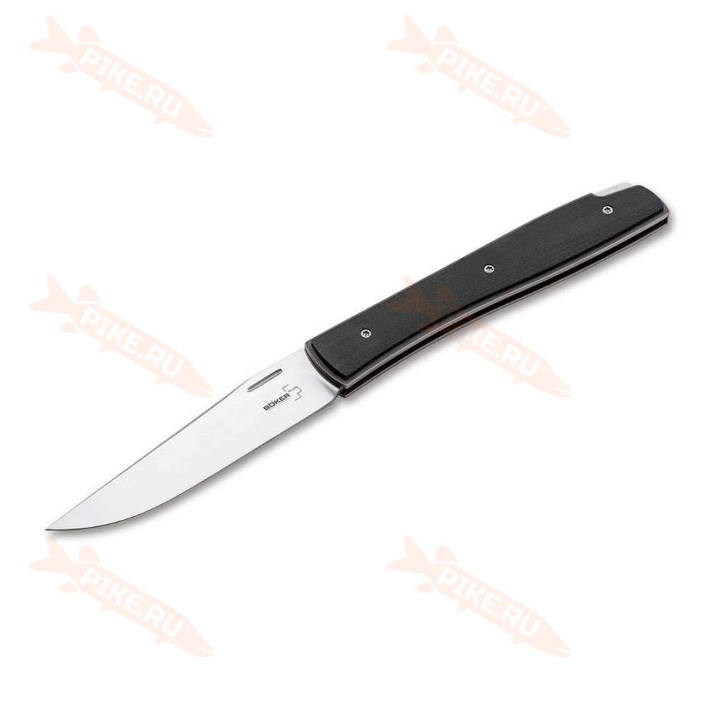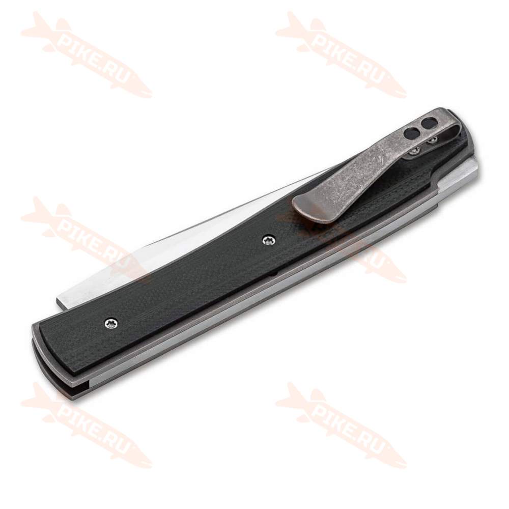 Нож Boker Urban Trapper Backlock G10 разработан специалистом по самообороне и дизайну Брэдом Зинкером (Brad Zinker) для сугубо городских условий использования. Изящный полированный клинок изготовлен из стали высшего класса – японской марки VG-10. Она прочна, устойчива к изнашиванию, а также долго сохраняет режущий край ножа в максимально остром состоянии. Форма клинка отличается плавными, сдержанными очертаниями.