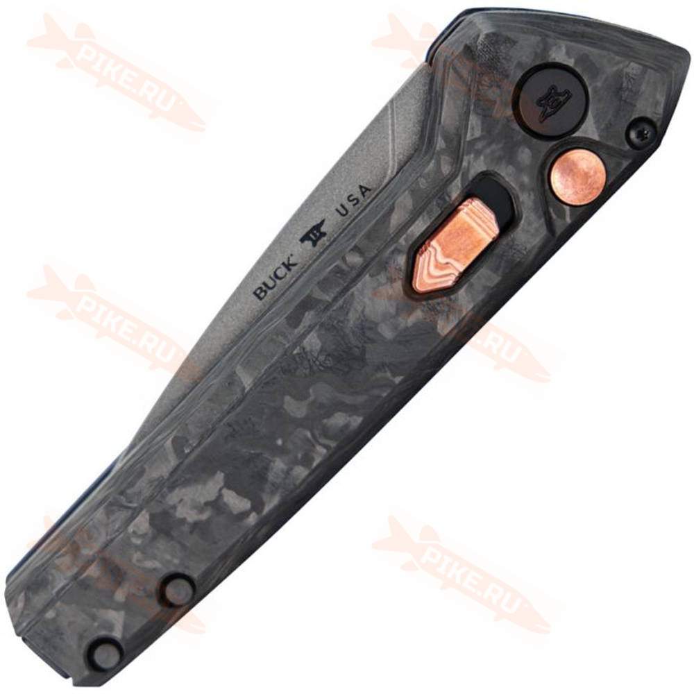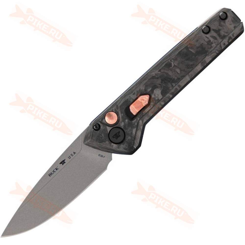 Нож Buck 838 Deploy 2024 Legacy Carbon для работы на открытом воздухе, отлично сохраняет остроту режущей кромки и режет как бритва. Лезвие Drop Point из нержавеющей стали CPM-S45VN с кнопкой блокировки/разблокировки. Чрезвычайно острое лезвие.