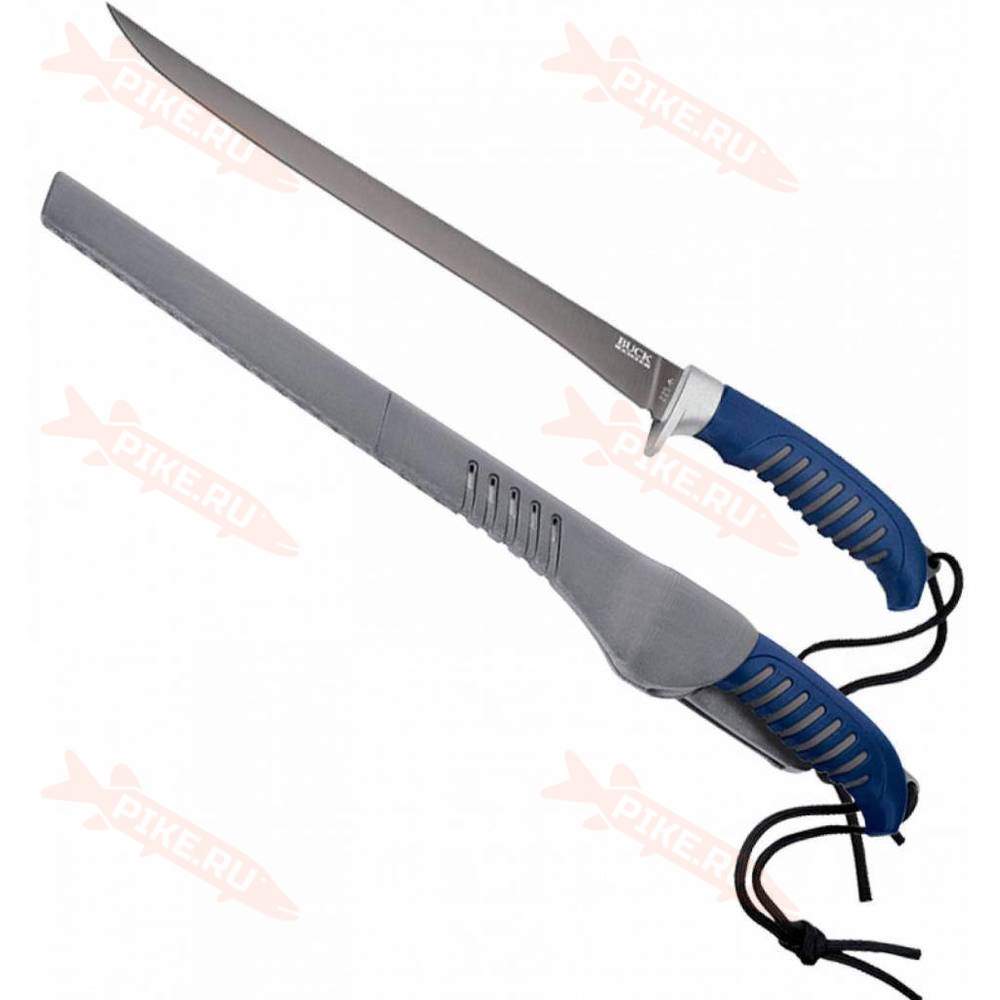 Нож Buck Silver Creek, 9 5/8 Filet Knife — филейный нож с фиксированным клинком. Клинок имеет относительно небольшие размеры, что делаете его удобным для разделки небольших тушек. Клинок с титановым покрытием обеспечивает дополнительную гибкость и устойчивость к коррозии. В комплект входят ножны, что позволяет носить с собой нож в любых условиях.