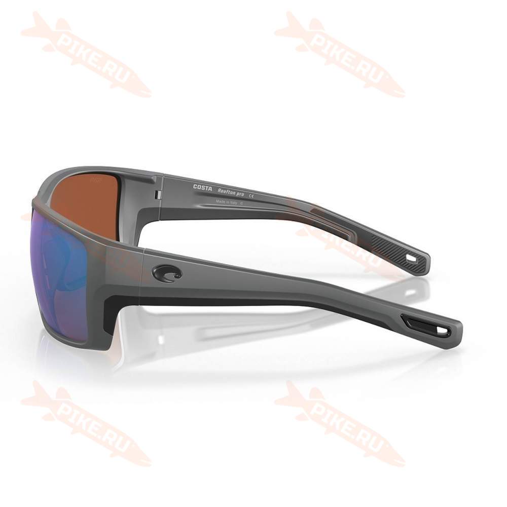 Очки Costa Reefton Pro Green Mirror 580G - идеальное решение для морской рыбалки. Поляризованные стеклянные линзы и широкие дужки предотвращают усталость глаз. Носовые и височные подушки Hydrolite® предотвращают скольжение, а открытые вентиляционные отверстия предотвращают запотевание.