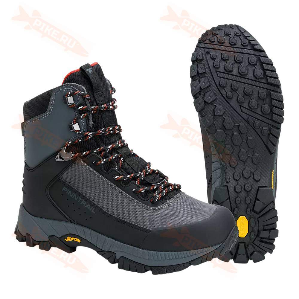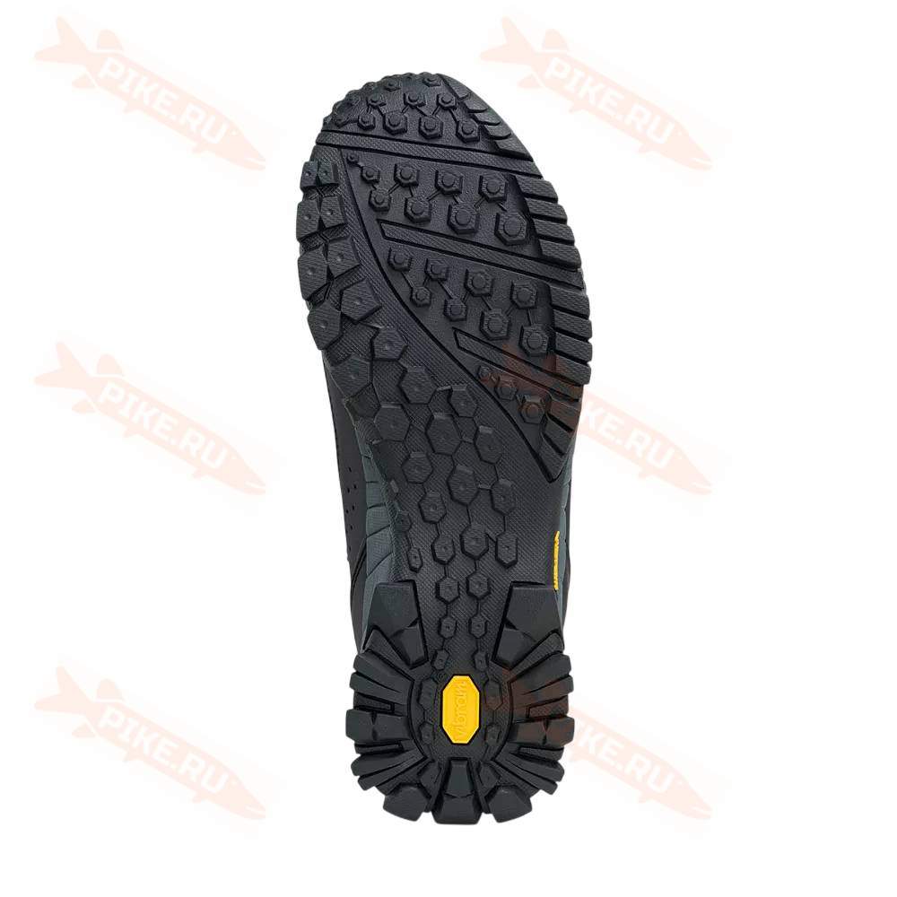 - Подошва Vibram с промежуточным слоем из ЭВА и цепким протектором гарантирует устойчивость на скользких, рельефных поверхностях.