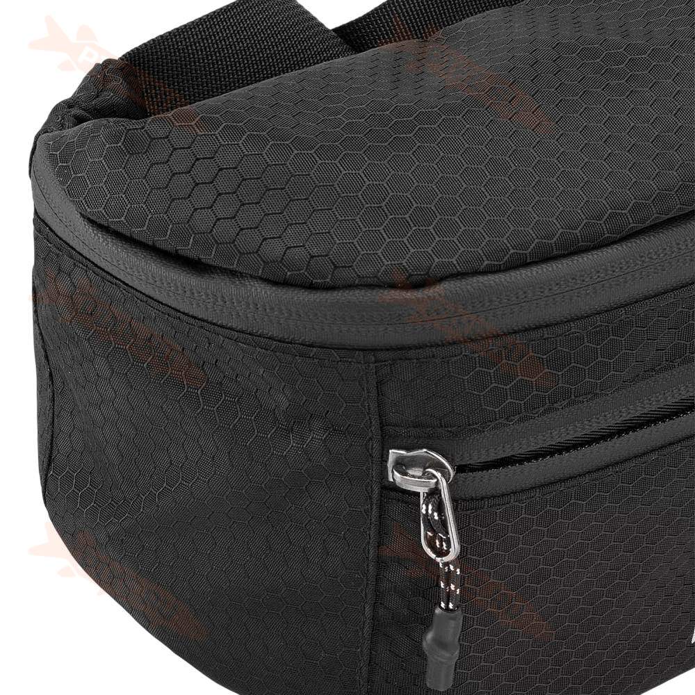 - Регулируемый ремень с фастексом позволяет носить сумку на поясе или через плечо, подстраивая посадку под себя.