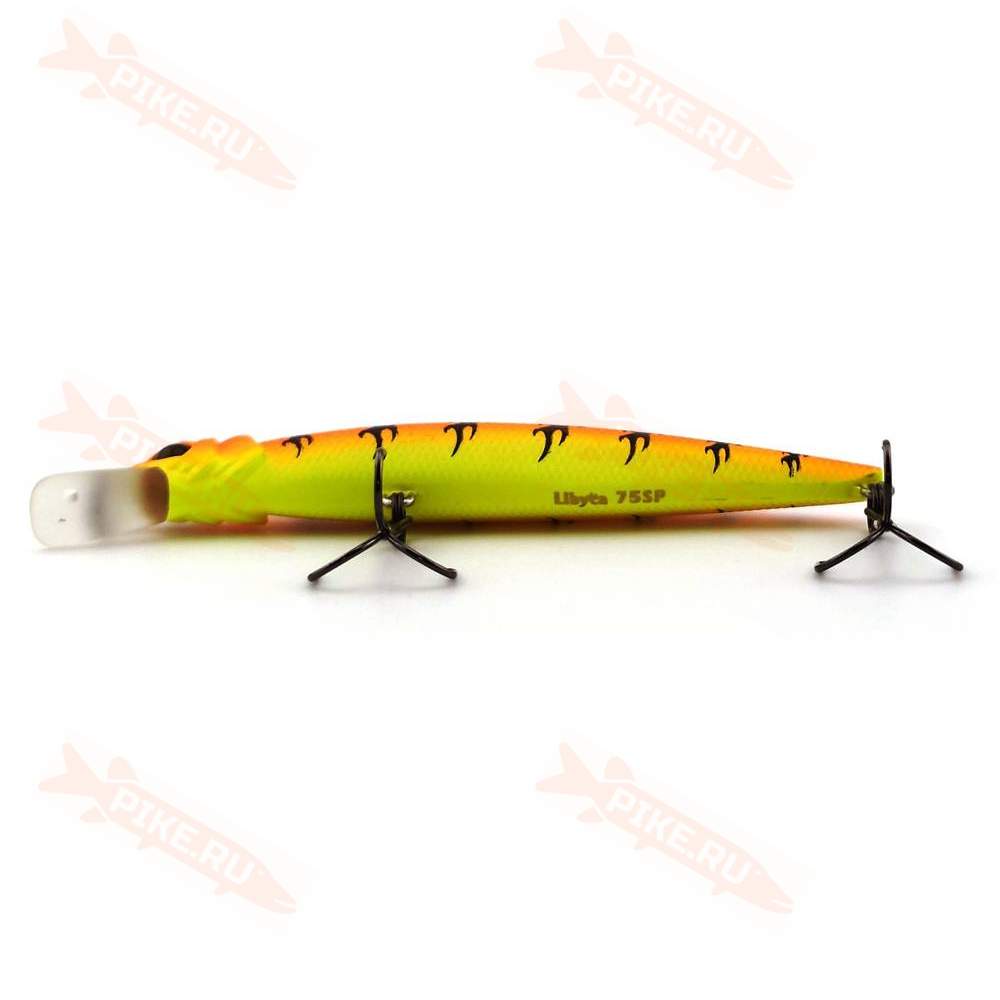 Система дальнего заброса помогает забросить эту небольшую приманку достаточно далеко и очень точно, что немало важно при ловле на небольших, заросших водной растительностью и береговыми кустами водоёмах. Libyca 75SP прекрасно ловит хищника небольшого и среднего размера. Своей игрой, способен соблазнить любую, даже мало активную рыбу. А если Вы любите ночью ловить судака в прибрежной зоне – этот воблер Вам просто необходим.