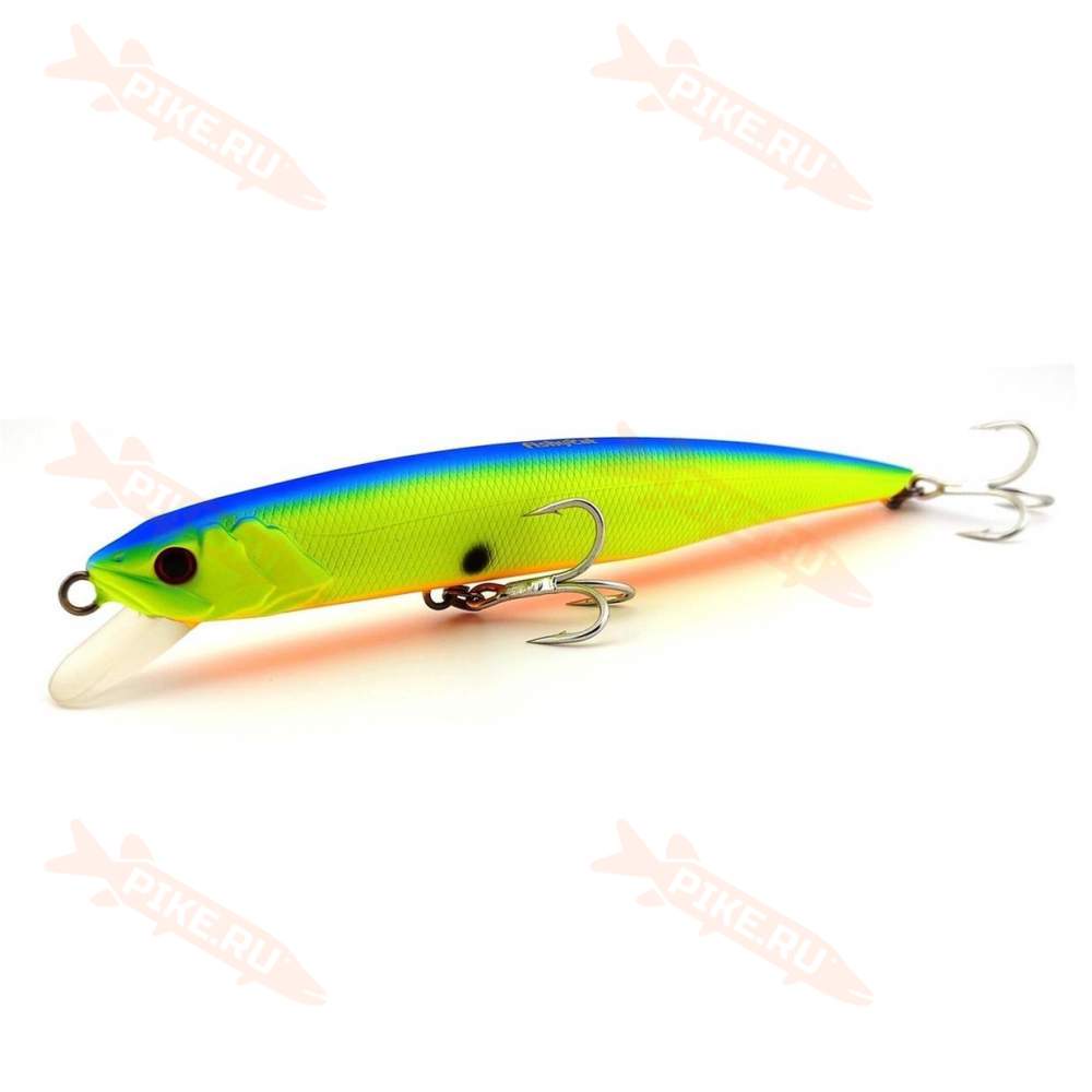 Производитель наделил модель длинным, узким прогонистым телом, характерным для приманок класса "минноу". Аэродинамические свойства воблера позволяют забросить приманку далеко и точно в облюбованное место. Внимание зубастой хищницы приковывают реалистичные глаза, жабры, насечка по телу в виде чешуи.