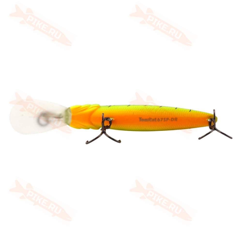 Воблер Fishycat TOMCAT 67SP-DR / X03 с нейтральной плавучестью рекомендован к использованию на хищных рыбах. Если ваша цель: щуки, окуни или судаки - то выбор этого воблера будет самым оптимальным.