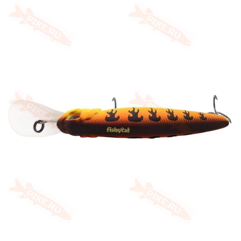 Воблер Fishycat имеет самые "вкусные" размеры - 67 мм. Хищная рыба знает, что добыча таких габаритов вкусная и охотно бросается на приманку. Поверхность покрыта краской, способной накапливать свет. Это актуально для ночных хищников. Во время рыбалки в тёмное время суток она будет слабо светиться.