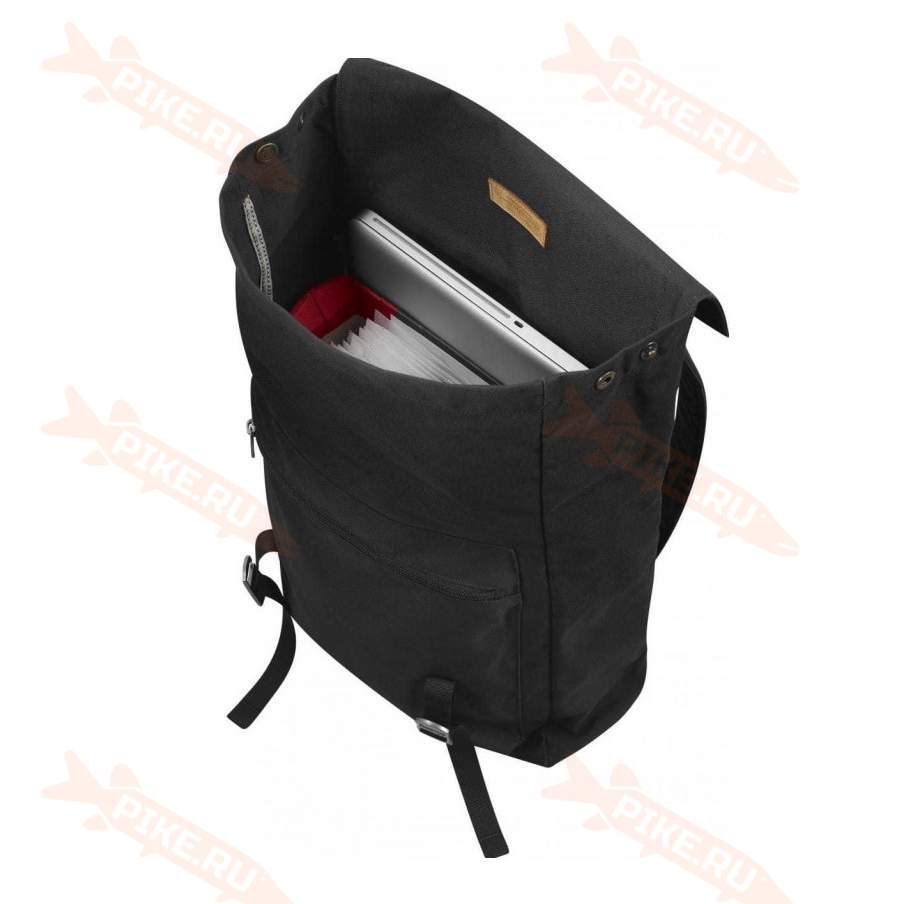 Простой дизайн, верхний клапан легко складывается и крепится по фронту текстильными ремешками с металлическими пряжками. В большой основной отсек можно получить доступ сверху, есть внутренний карман с мягкой подложкой в нижней части под ноутбук (до 15").
