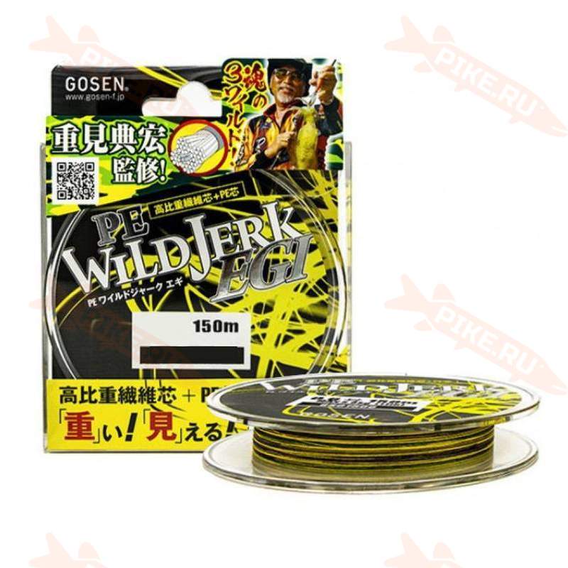 Шнур GOSEN Wild Jerk Egi 150m #0.5 PE, Yellow разработан самым известным в Японии охотником на кальмаров и мастером техники Ega, господином Сигэми Норихиро. Одной из важнейших особенностей является повышенная видимость благодаря использованию жёлтых фрагментов.