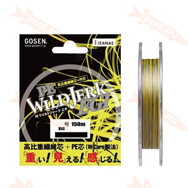 Шнур GOSEN Wild Jerk Egi 150m #0.6 PE, Yellow разработан самым известным в Японии охотником на кальмаров и мастером техники Ega, господином Сигэми Норихиро. Одной из важнейших особенностей является повышенная видимость благодаря использованию жёлтых фрагментов.