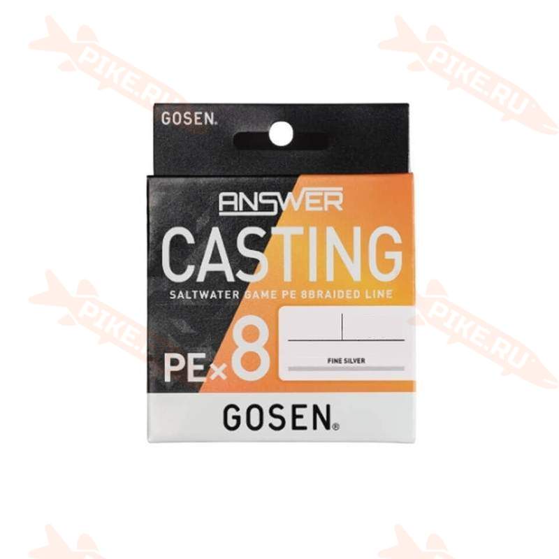 Шнур GOSEN Answer Casting PE×8 200m #1.2 PE, Fine Silver - серия восьмижильных плетёных лесок от японской компании. Это специализированный шнур, разработанный для ловли кастинговой снастью. Отлично подходит как для морской, так и для пресноводной рыбалки.