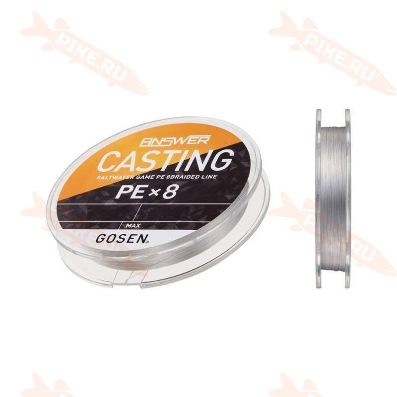 Шнур GOSEN Answer Casting PE×8 200m #3.0 PE, Fine Silver - серия восьмижильных плетёных лесок от японской компании. Это специализированный шнур, разработанный для ловли кастинговой снастью. Отлично подходит как для морской, так и для пресноводной рыбалки.