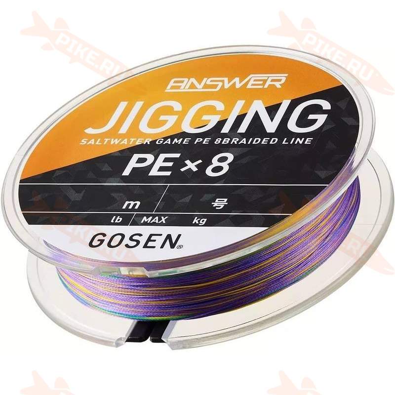 Шнур GOSEN Answer Jigging PEX8 200m #2.0 PE, Multicolor - плетёный шнур от японского бренда. Разработан для береговой рыбалки, где необходим предельно дальний заброс. В своей основе Jigging PE имеет 8 нитей нового поколения, которые сплетены по фирменной технологии компании.