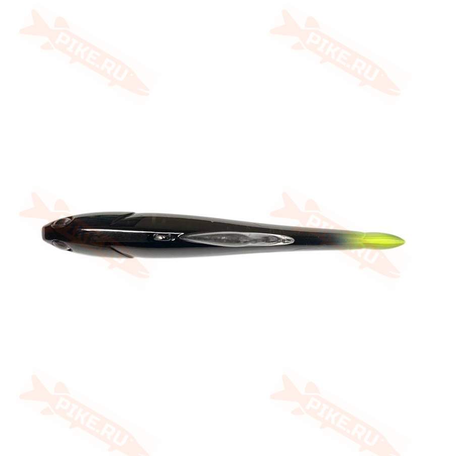 Приманка имеет отменно сбалансированное сигарообразное тело. Точка подвеса ближе к центру роднит её с балансиром. Эффектную проводку во многом задаёт внушительный вертикальный плавник, а два острейших тройника Owner моментально пробивают жёсткую пасть судака.