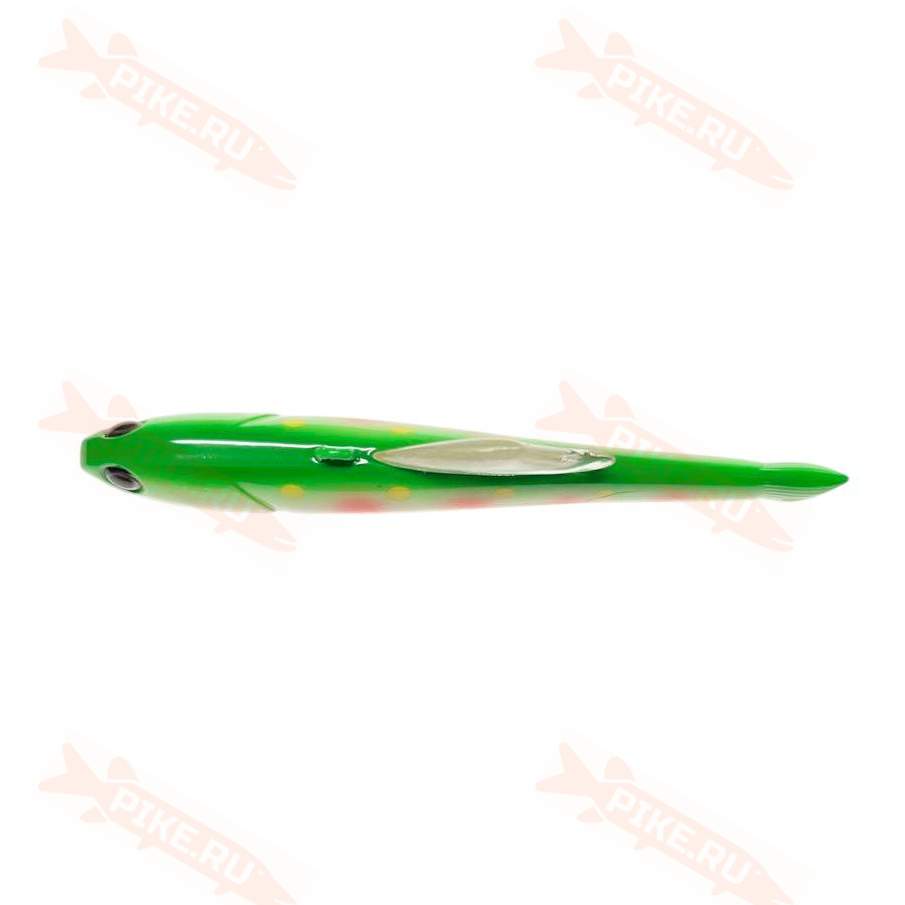 Приманка имеет отменно сбалансированное сигарообразное тело. Точка подвеса ближе к центру роднит её с балансиром. Эффектную проводку во многом задаёт внушительный вертикальный плавник, а два острейших тройника Owner моментально пробивают жёсткую пасть судака.
