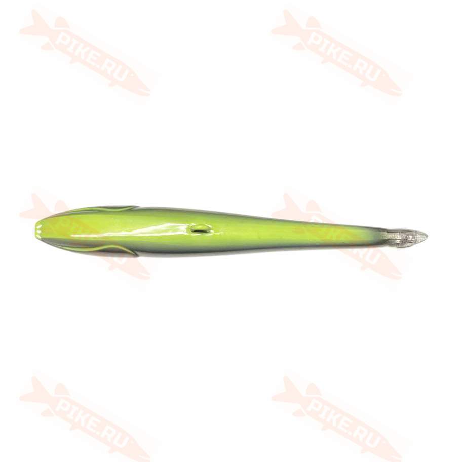 Приманка имеет отменно сбалансированное сигарообразное тело. Точка подвеса ближе к центру роднит её с балансиром. Эффектную проводку во многом задаёт внушительный вертикальный плавник, а два острейших тройника Owner моментально пробивают жёсткую пасть судака.