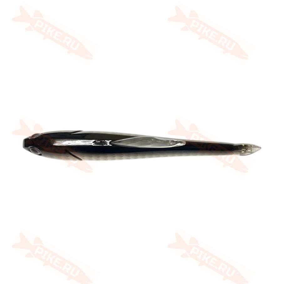 Приманка имеет отменно сбалансированное сигарообразное тело. Точка подвеса ближе к центру роднит её с балансиром. Эффектную проводку во многом задаёт внушительный вертикальный плавник, а два острейших тройника Owner моментально пробивают жёсткую пасть судака.
