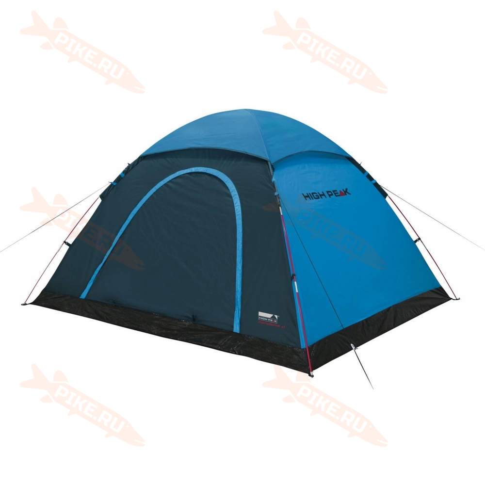Палатка High Peak MONODOME XL проста в установке, дуги продеваются в рукава на внешнем тенте, что позволяет устанавливать палатку и в дождь. Материал тента имеет полиуретановое покрытие и водонепроницаемость не менее 1500 мм водяного столба.