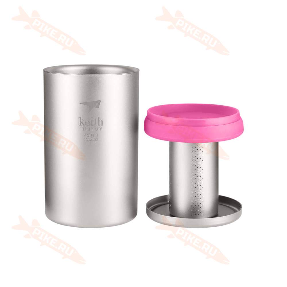 Офисная кружка с заварником Keith Titanium Ti3524 450ml, розовая изготовлена из титана марки TA1 с чистотой 99,9%, без примесей и дополнительного покрытия. Титан не имеет привкуса и запаха, материал нетоксичен, подходит для мытья в посудомоечной машинке. Первоначально разработанный для походов, кемпинга и путешествий, титан также отлично подходит для проведения пикников, использования дома и в офисе. Материал сверхлёгкий и сверхпрочный, экологически чистый, безопасный для людей, блокирующий распространение бактерий. Он гипоаллергенен и обладает высокой устойчивостью к коррозии.