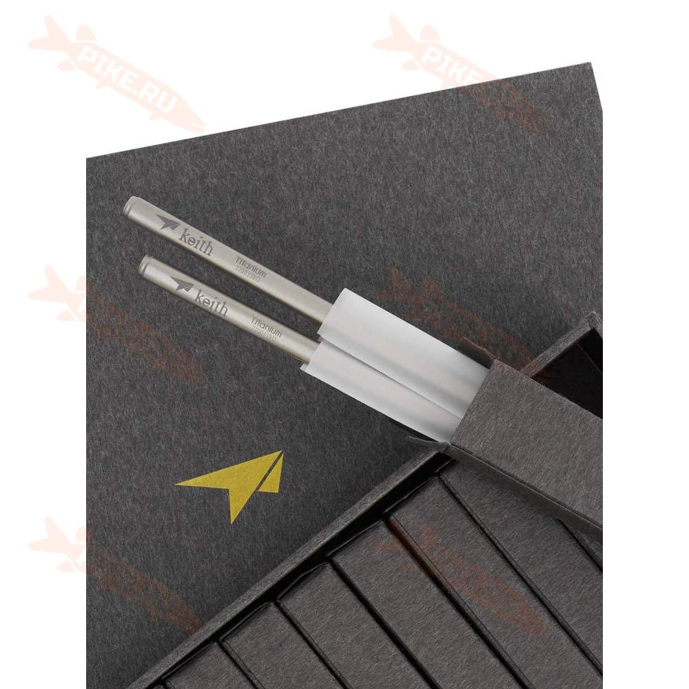 Набор титановых палочек с квадратной ручкой Keith Titanium Ti5636 изготовлен из титана марки TA1 с чистотой 99,9%, без примесей и дополнительного покрытия, включает в себя 10 пар палочек. Титан не имеет привкуса и запаха, материал нетоксичен, подходит для мытья в посудомоечной машинке. Первоначально разработанный для походов, кемпинга и путешествий, титан также отлично подходит для проведения пикников, использования дома и в офисе. Материал сверхлёгкий и сверхпрочный, экологически чистый, безопасный для людей, блокирующий распространение бактерий. Он гипоаллергенен и обладает высокой устойчивостью к коррозии.