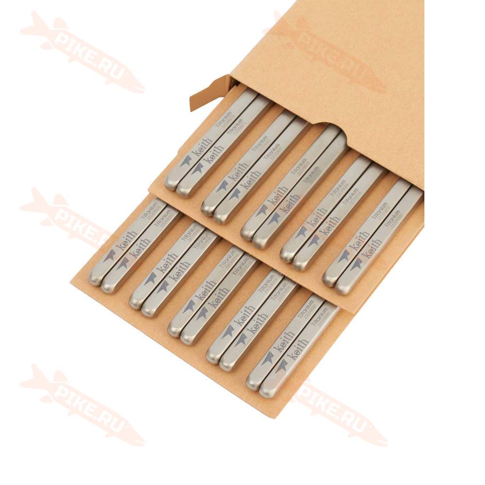 Набор титановых палочек с квадратной ручкой Keith Titanium Ti5651 изготовлен из титана марки TA1 с чистотой 99,9%, без примесей и дополнительного покрытия, включает в себя 10 пар палочек. Титан не имеет привкуса и запаха, материал нетоксичен, подходит для мытья в посудомоечной машинке. Первоначально разработанный для походов, кемпинга и путешествий, титан также отлично подходит для проведения пикников, использования дома и в офисе. Материал сверхлёгкий и сверхпрочный, экологически чистый, безопасный для людей, блокирующий распространение бактерий. Он гипоаллергенен и обладает высокой устойчивостью к коррозии.