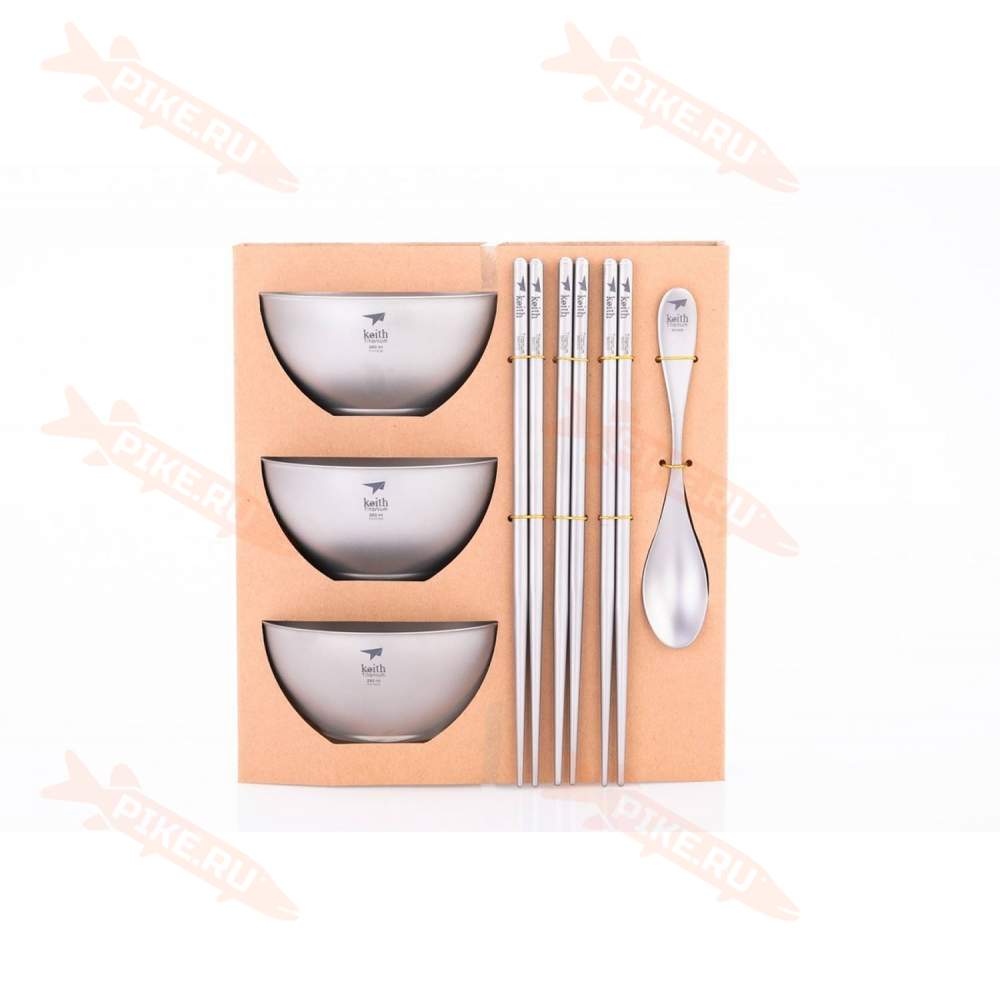 Подарочный набор титановой посуды Keith Titanium Ti5803 изготовлен из титана марки TA1 с чистотой 99,9%, без примесей и дополнительного покрытия. Титан не имеет привкуса и запаха, материал нетоксичен, подходит для мытья в посудомоечной машинке. Первоначально разработанный для походов, кемпинга и путешествий, титан также отлично подходит для проведения пикников, использования дома и в офисе. Материал сверхлёгкий и сверхпрочный, экологически чистый, безопасный для людей, блокирующий распространение бактерий. Он гипоаллергенен и обладает высокой устойчивостью к коррозии.