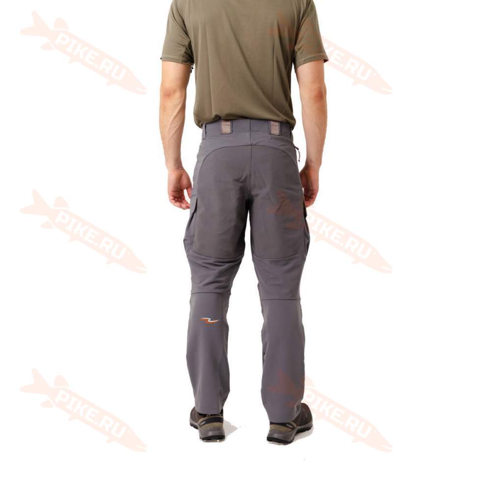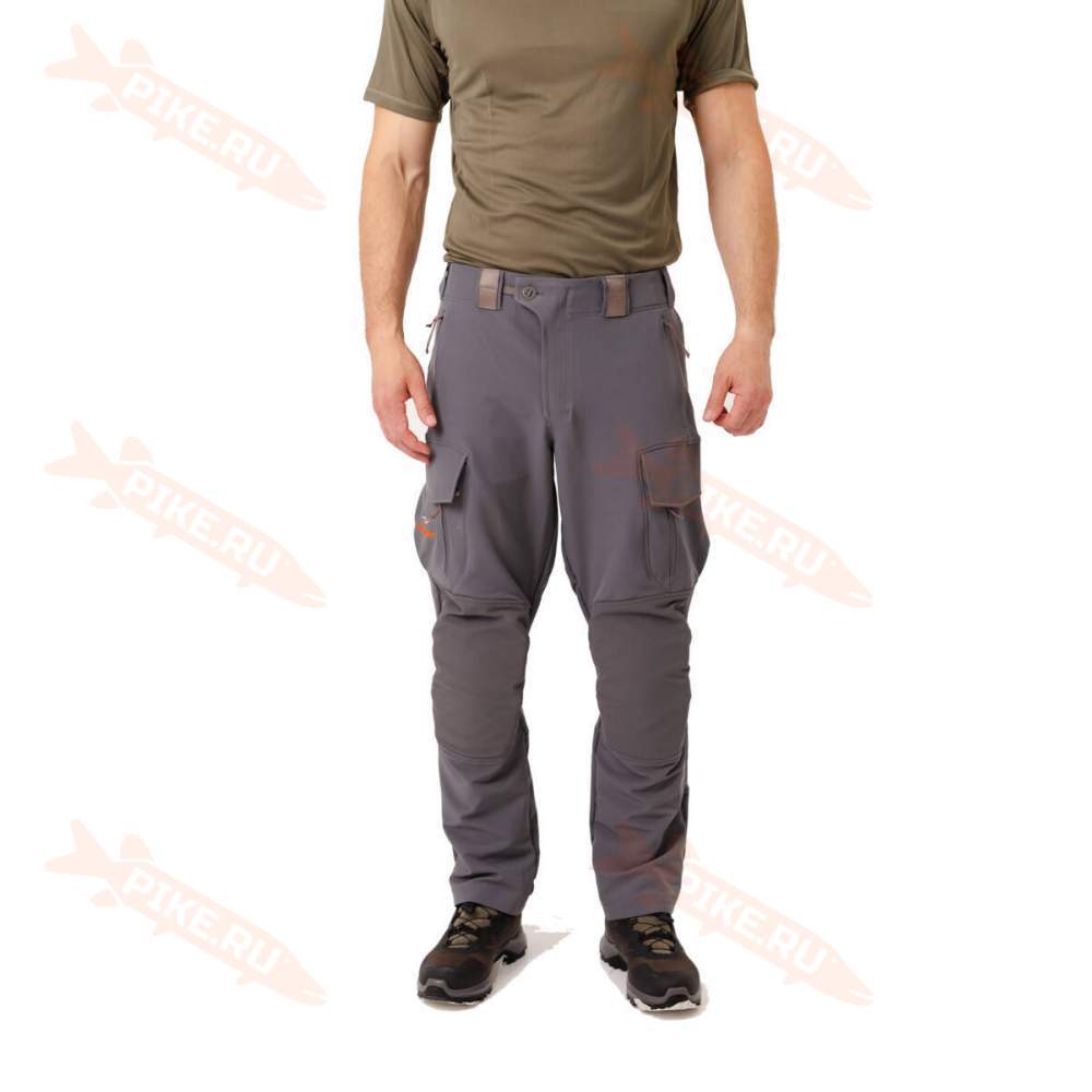 Они усилены прочной двойной тканью, а также съёмными наколенниками, которые позволяют принимать любые позиции во время охоты и рыбалки, пробираться через лесные заросли, припадать на одно колено и т.д., не опасаясь испортить одежду.