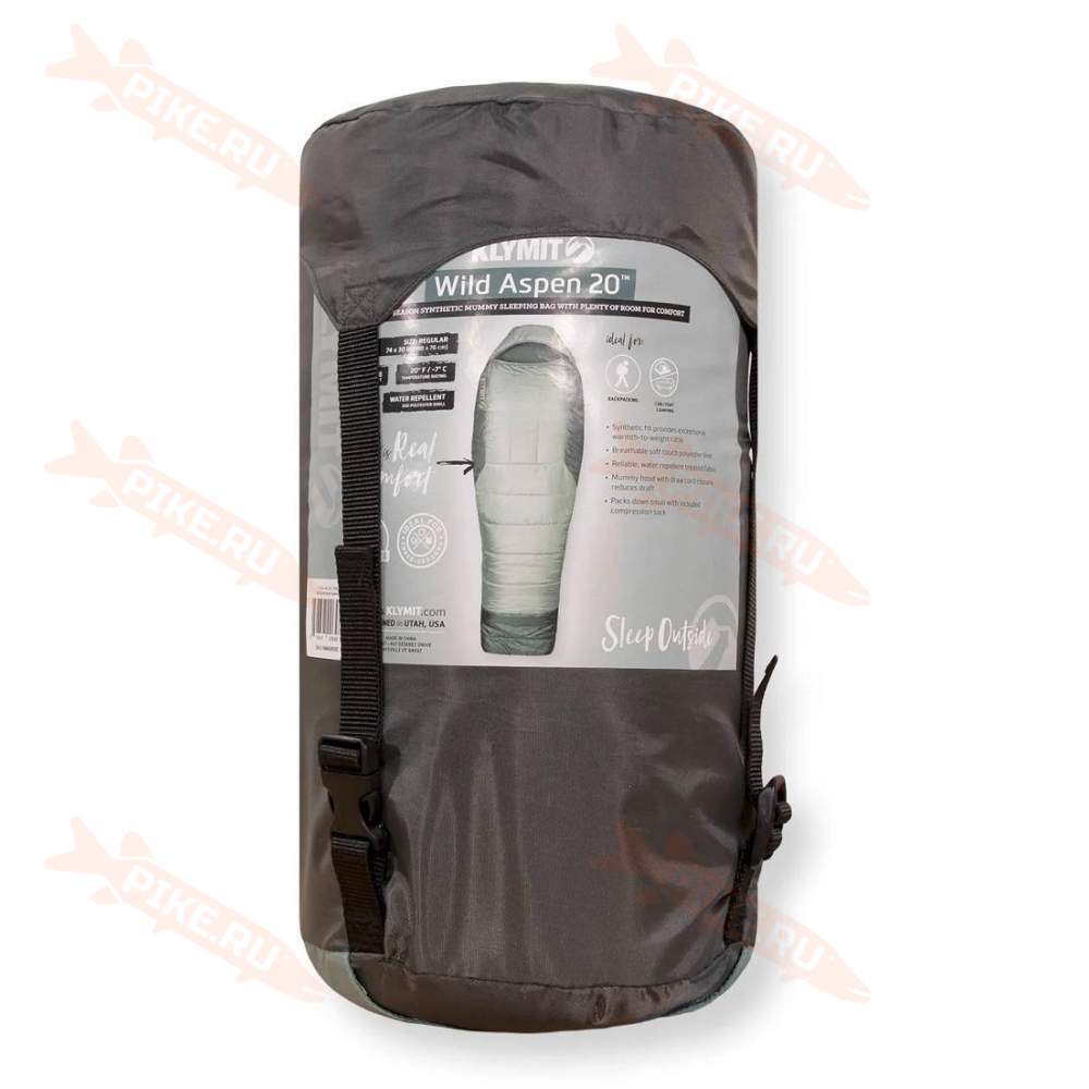 Спальный мешок Klymit WILD ASPEN 20 Large, зелёный – туристический спальный мешок, рассчитанный на трёхсезонное использование. Синтетический утеплитель обеспечивает отличное соотношение тепла и веса. Верхняя часть спальника выполнена из лёгкого и прочного микро полиэстера.