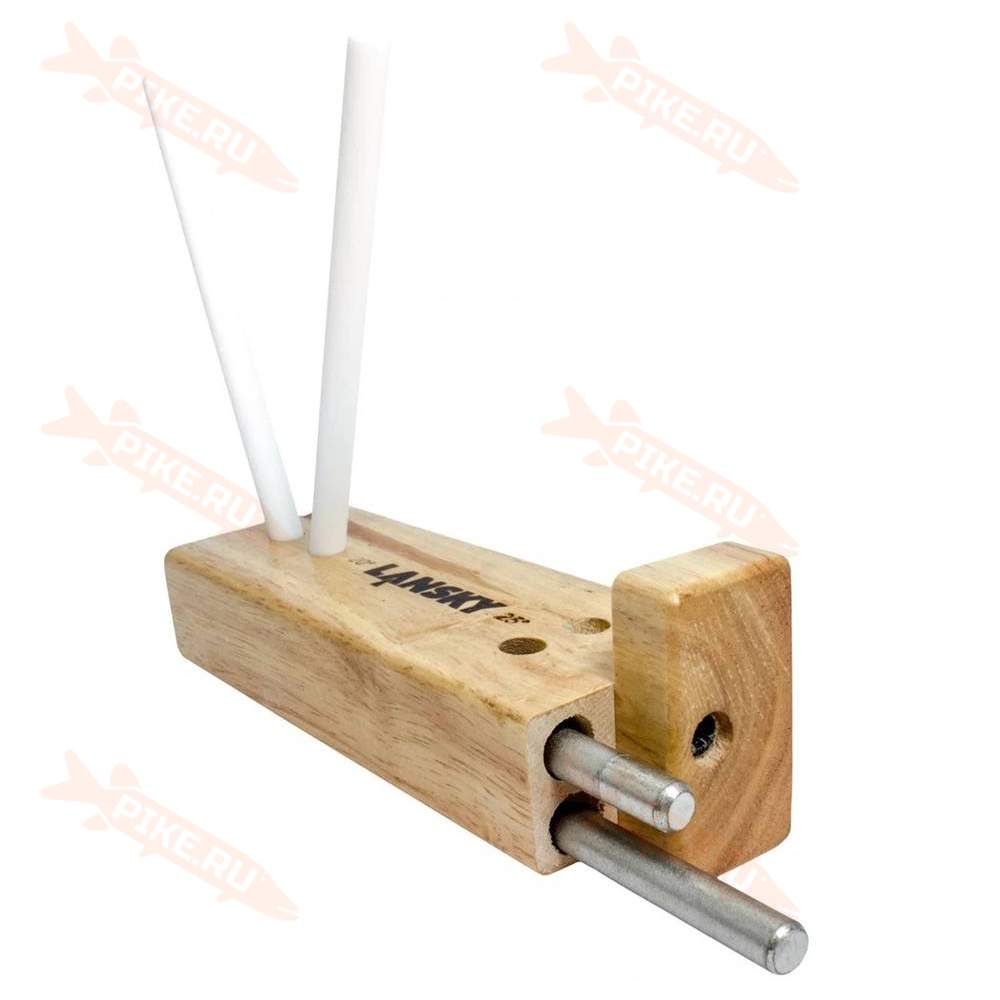 Точильная система Lansky с 4 стержнями керамика/алмаз – это деревянная основа, в верхней части которой сделаны четыре отверстия под углами 20 и 25 градусов. В эти отверстия вставляются входящие в комплект стержни. Сами стержни располагаются в боковых отверстиях основы и закрыты от выпадения и поломки крышкой.