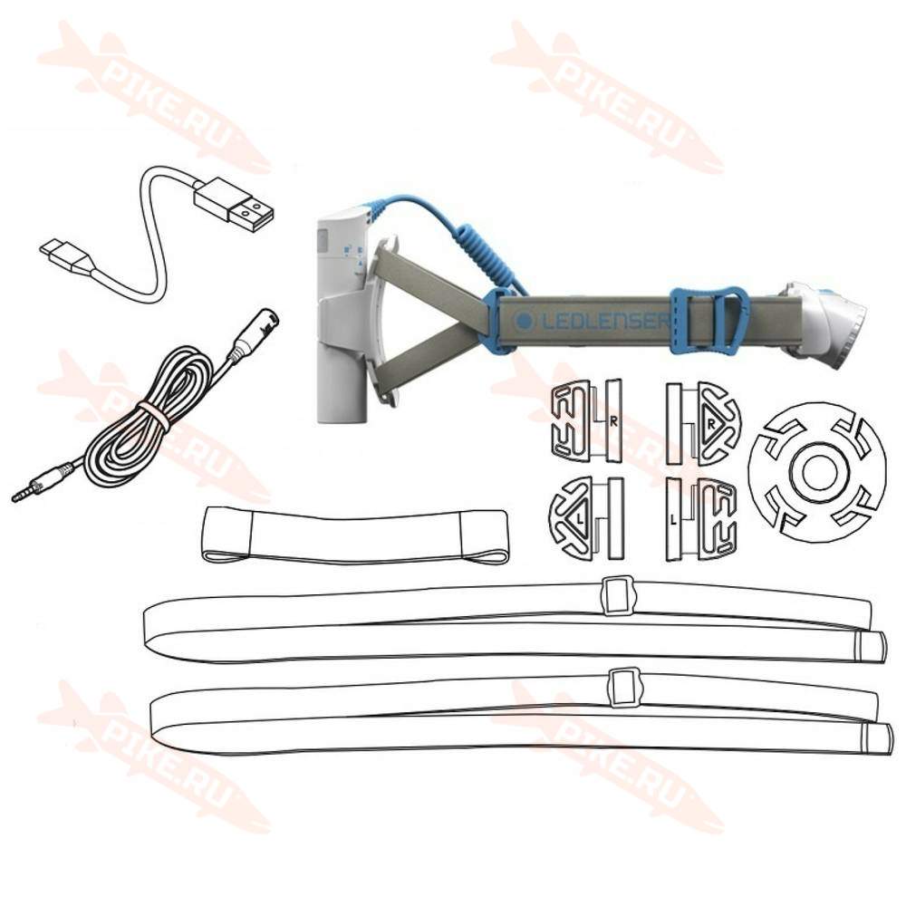 На оголовье имеются промежуточные крепления для провода, идущего от головной части фонаря к батарейному блоку.
