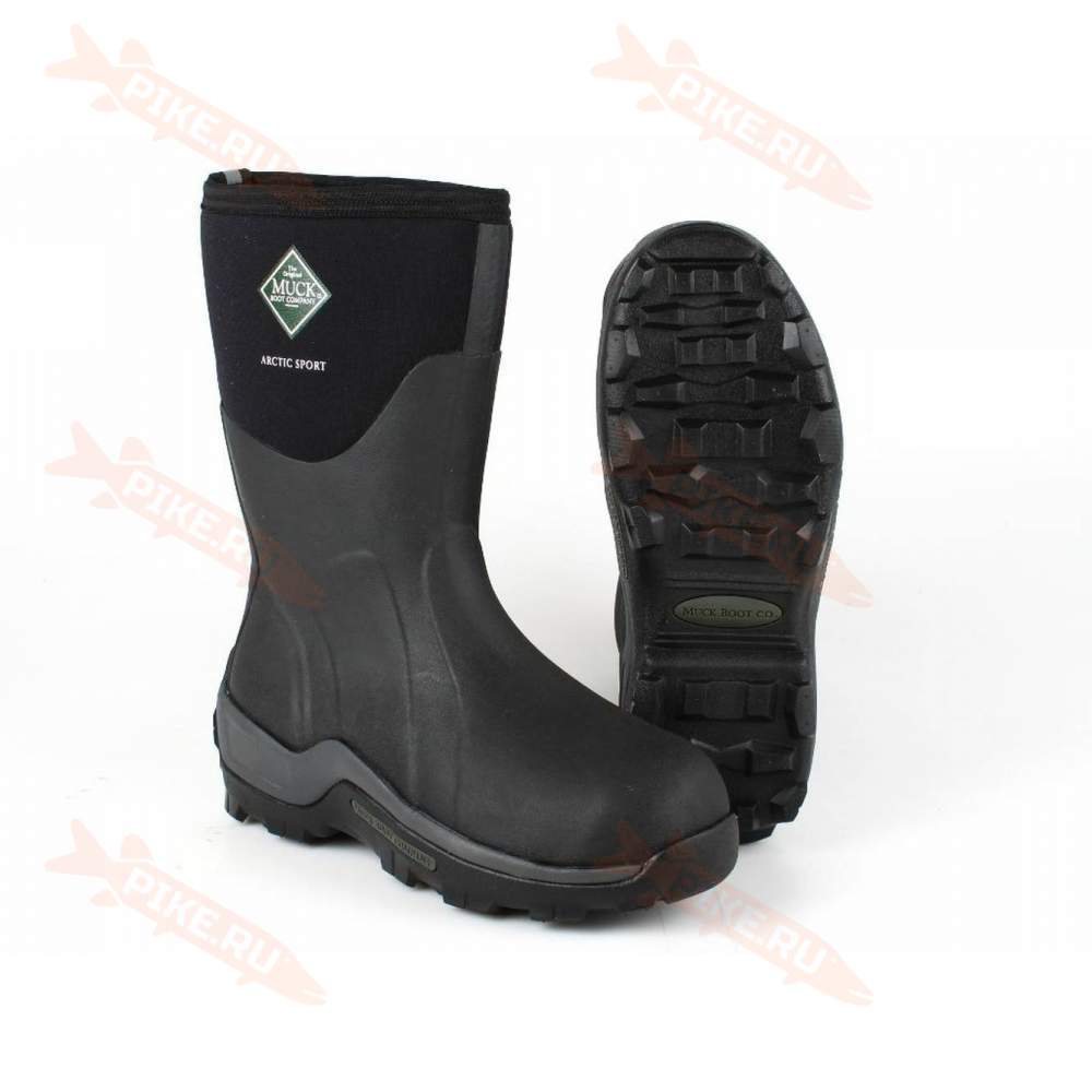Комфортные короткие черные мужские резиновые сапоги MuckBoot Arctiс Sport для активного отдыха, охоты и рыбалки в условиях холода морозной зимы.