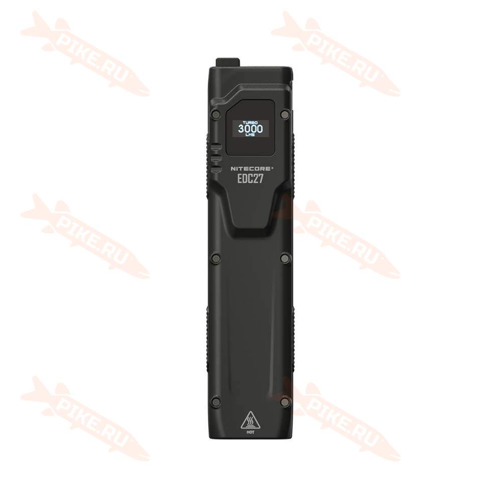 Многофункциональный OLED-дисплей в режиме реального времени может отображать уровень яркости, напряжение аккумулятора, оставшееся время работы и многое другое. С помощью входящего в комплект зажима EDC27 можно прикрепить к системе MOLLE рюкзака или кармана.