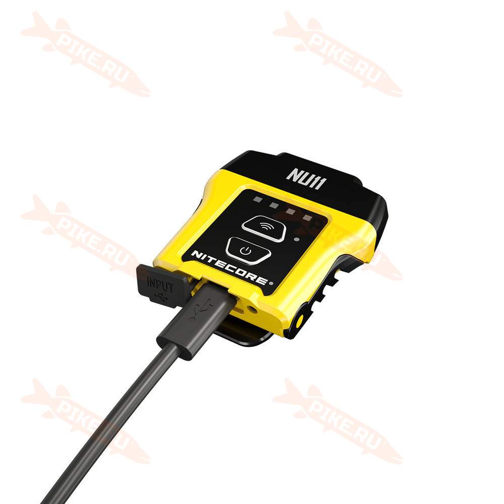 NU11 питается от аккумулятора, что позволяет ловить рыбу в течение ночи на одном заряде. Он может работать 6 часов при яркости 45 люмен, обеспечивая целую ночь рыбалки в дикой природе с перерывами. Он перезаряжается по USB-C, имеет высокую эффективность и реверсивное подключение.