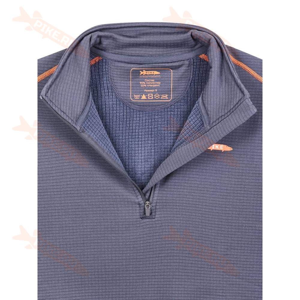 Тёплое термобельё Pike с воротом и нагрудной молнией сделано из флисовой ткани с использованием технологии «вафельного» плетения, которая имеет хорошие влагоотводящие свойства за счёт оптимального соотношения пористой структуры полотна и его плотности. Особая вязка «вафли» обеспечивает терморегуляцию как в статике, так и в динамике.