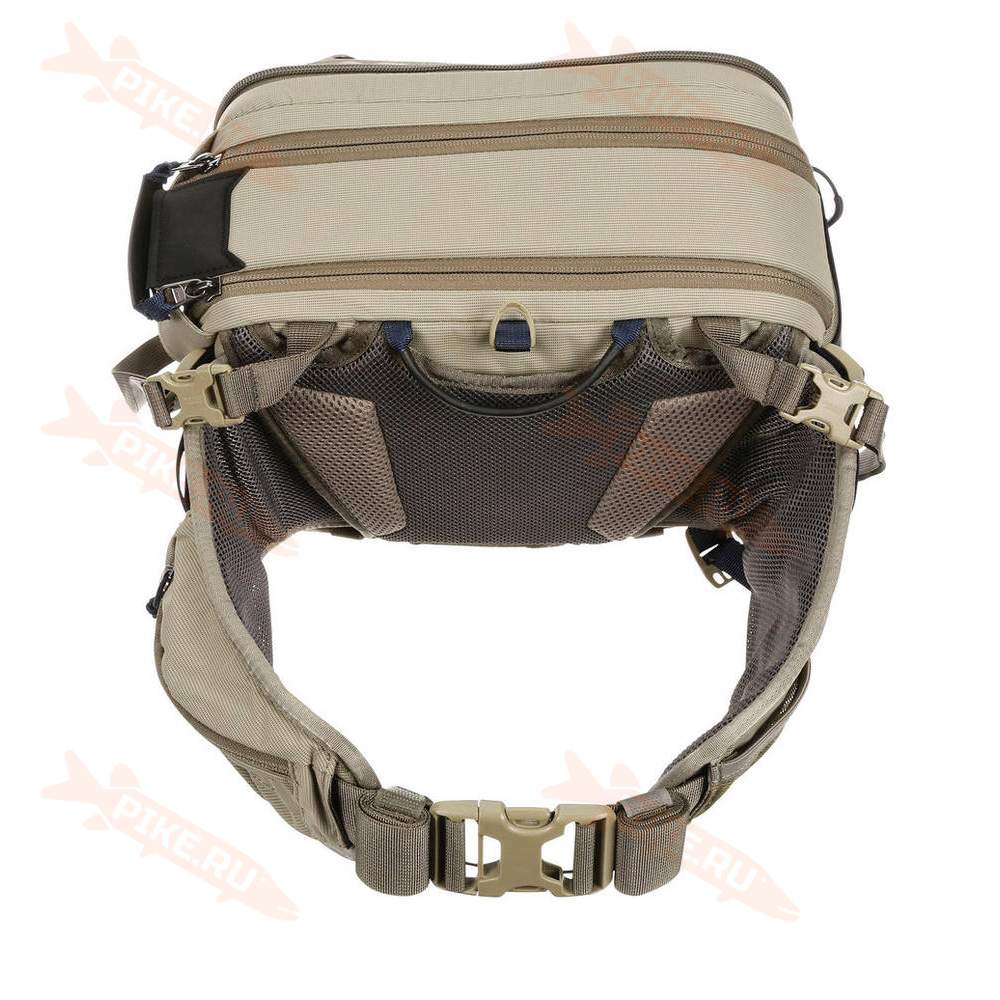 Продуманный дизайн отделений, удобный держатель для спиннинга или нахлыстового удилища и многочисленные наружные карманы на молнии позволяют держать предметы первой необходимости под рукой.