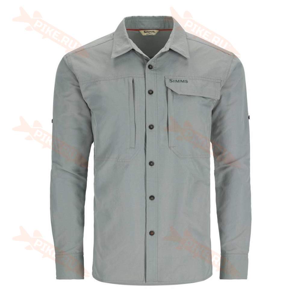 Рубашка Simms Guide Shirt для профессиональных рыболовов с надёжными карманами, регулируемыми рукавами и прочной быстросохнущей тканью для комфорта на рыбалке.