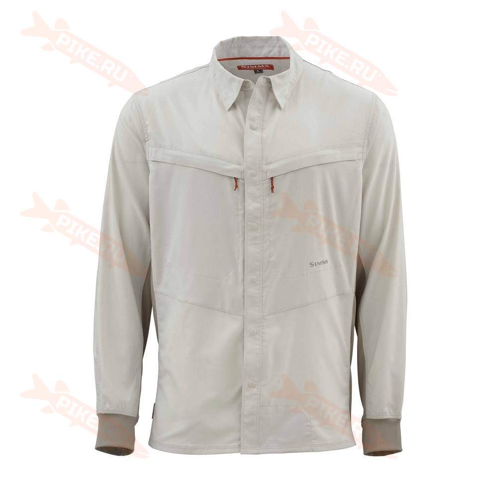 Рубашка Simms Intruder BiComp LS Shirt изготовлена из быстросохнущего тканого полиэфира повышенной прочности с добавлением ткани SolarFlex® на манжетах.