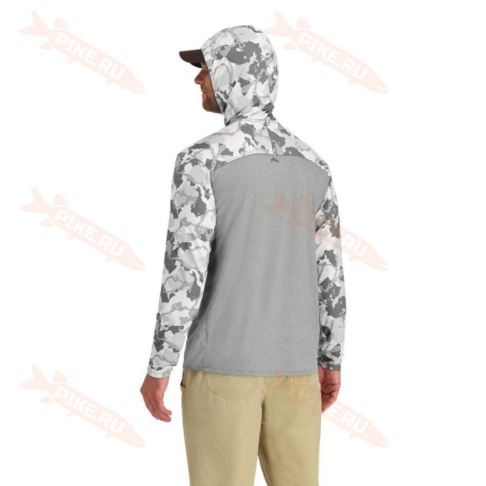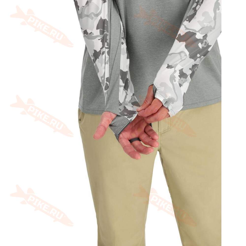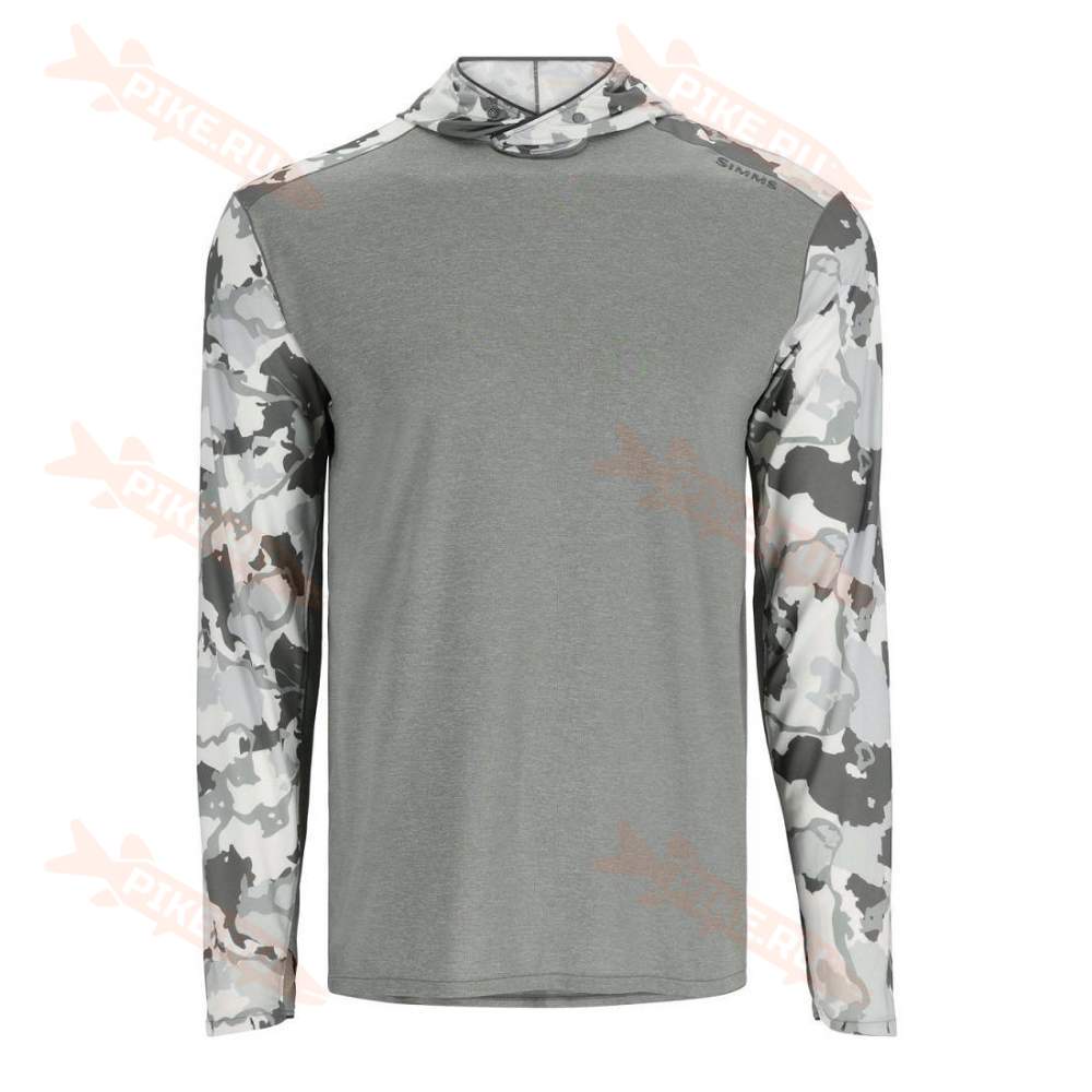 Термофутболка Simms Bugstopper Solarflex Hoody, Cinder-Regiment Camo Cinder сочетается с полным набором защиты от насекомых Insect Shield и защитой UPF 30+. Толстовка – это незаменимый помощник в жаркий день, который позволит вам сосредоточиться на единственном зуде, который нужно почесать – на рыбалке.