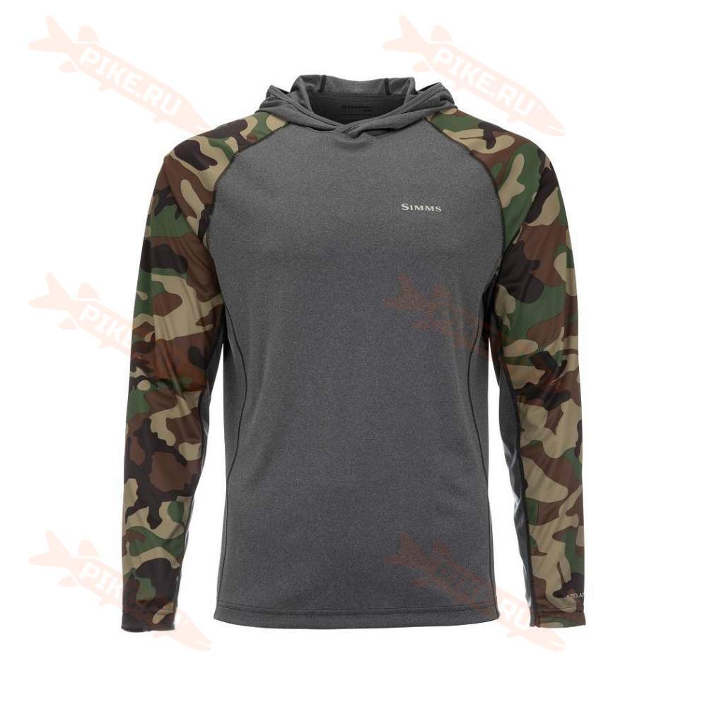 - Simms SolarFlex Hoody - Print, Woodland Camo-Carbon Heather