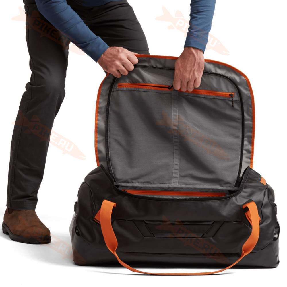 Сумка Sitka Drifter Dufflie 75 вместит весь ваш комплект одежды и ещё останется место для других вещей. Прочный материал рип-стоп 150 ден с термополиуретановым покрытием, использованный в верхней части, и водонепроницаемое дно из рип-стопа 450 ден с термополиуретановым покрытием защищают ваши вещи во время перелётов и под открытым небом.