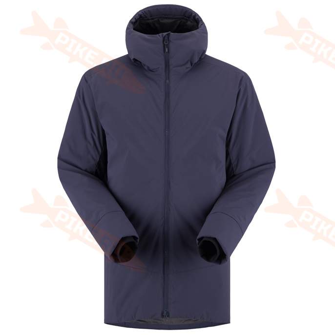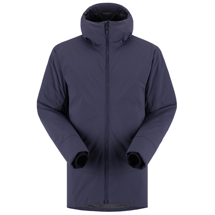 Отсутствие лишних швов и стёжек позволяет избежать утечек тепла и вносит вклад в строгий и современный внешний вид модели. Для обеспечения комфорта в ветреную погоду пальто оснащено удобным втачным капюшоном и мягкими трикотажными манжетами по низу рукава. Ропас имеет два тёплых боковых кармана и один внутренний карман для документов.