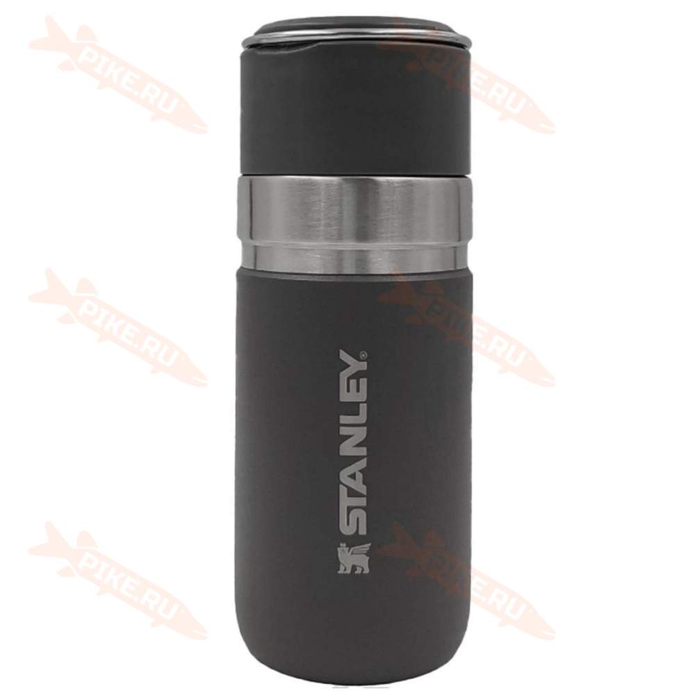 Термобутылка Stanley GO с двустенной вакуумной изоляцией из нержавеющей стали 18/8. Закрывается при помощи завинчивающейся крышки с карабином с легко открывающимся замком.