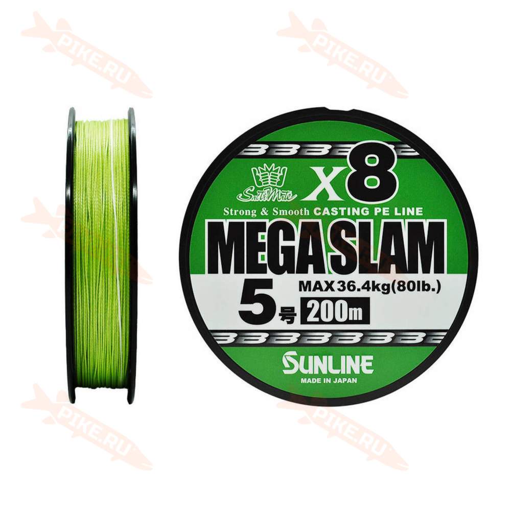 Шнур Sunline Saltymate Mega Slam x8 200m #5 PE, Bright Green - мощный восьмижильный шнур, рассчитанный на трофейную ловлю и большие приманки. Благодаря материалу ULT-PE он отличается мягкостью даже в самых больших диаметрах. Это положительно влияет как на комфорт заброса, так и на контроль приманки.