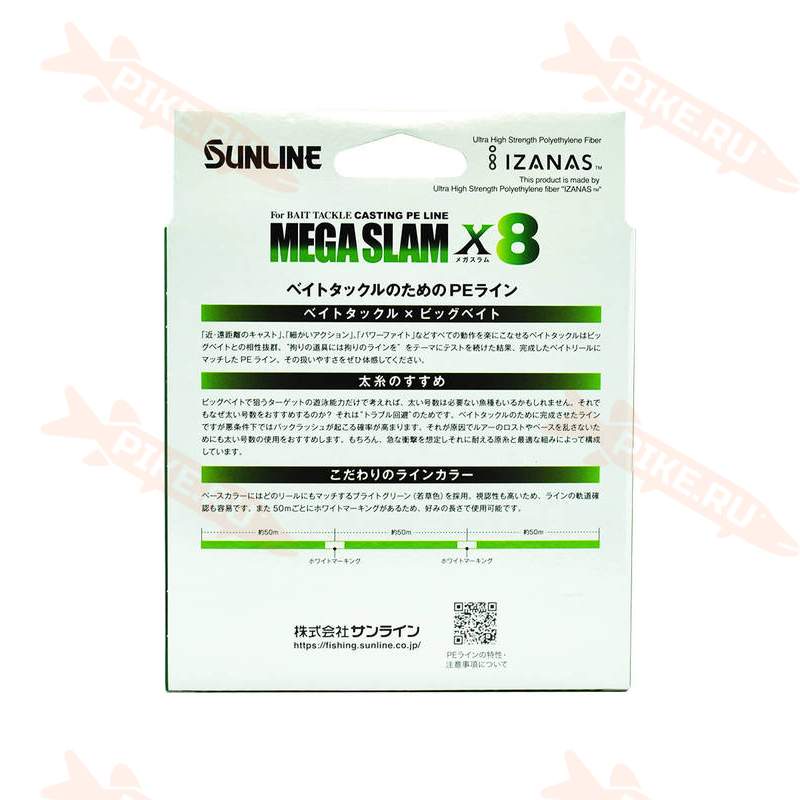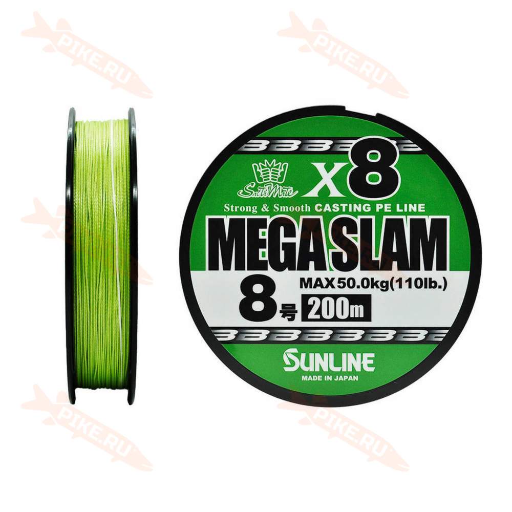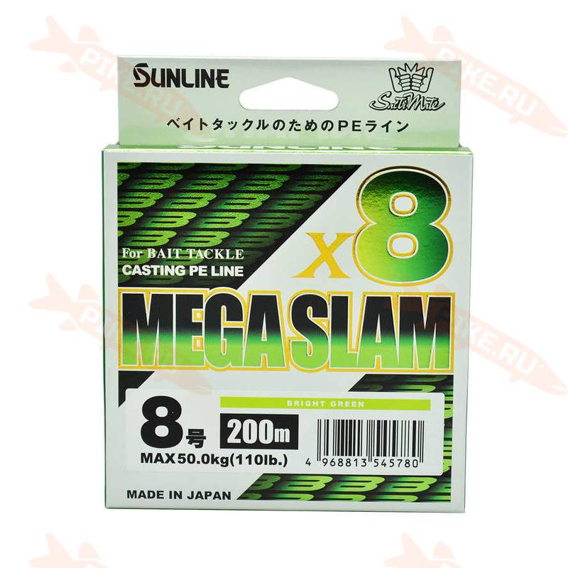 Шнур Sunline Saltymate Mega Slam x8 200m #8 PE, Bright Green - мощный восьмижильный шнур, рассчитанный на трофейную ловлю и большие приманки. Благодаря материалу ULT-PE он отличается мягкостью даже в самых больших диаметрах. Это положительно влияет как на комфорт заброса, так и на контроль приманки.