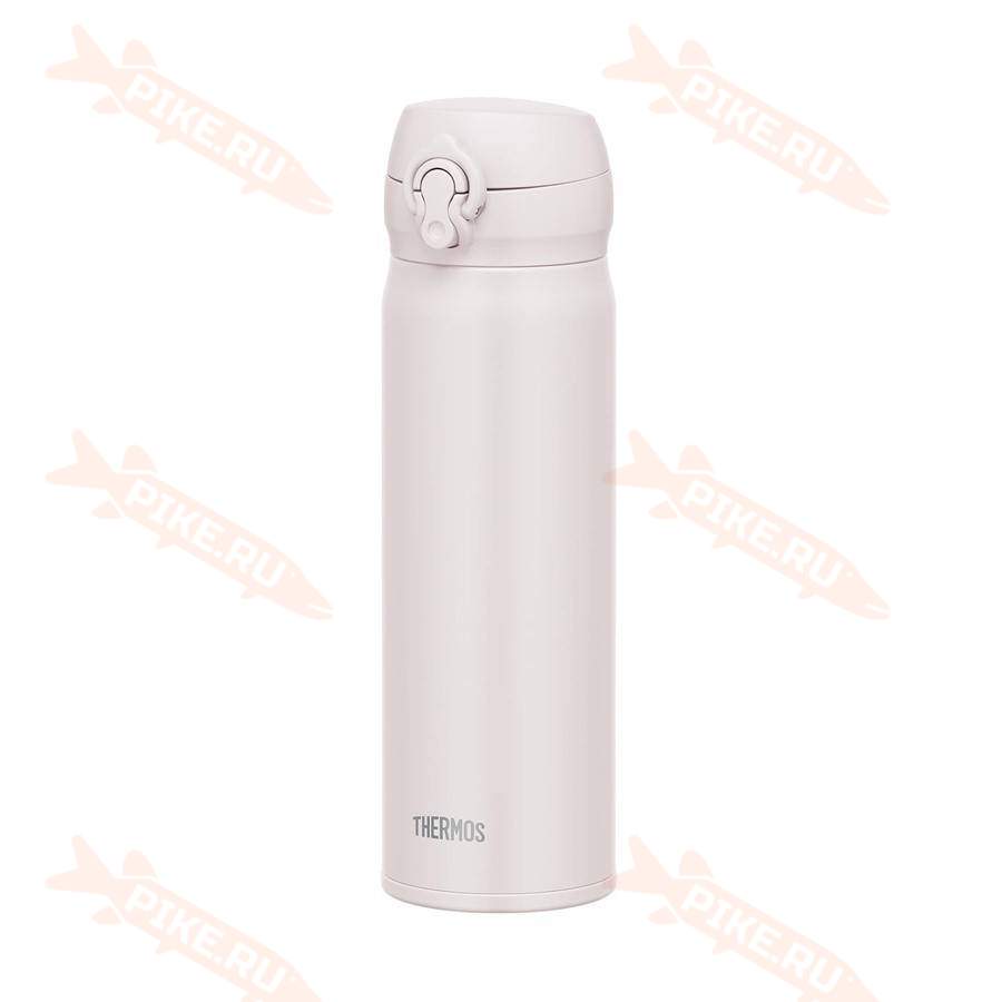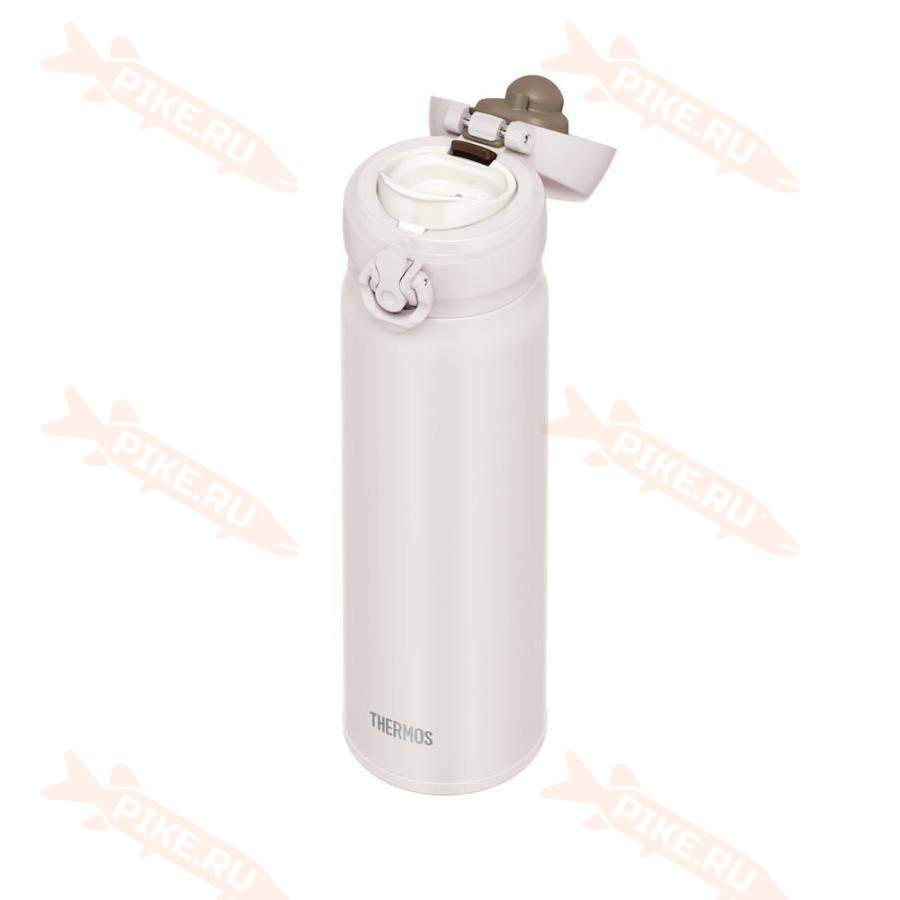 Термос Thermos JNL-506 ASWH 0,5L отличается особым комфортом в использовании. Им можно пользоваться даже на бегу за счёт оригинальной конструкции крышки-пробки. Термокружка легко открывается и закрывается одной рукой – левой или правой. Для открывания термоса достаточно нажать на кнопку на фронтальной части крышки – верхняя крышка автоматически откидывается на 180 градусов, фиксируется в открытом положении и не опрокидывается при питье. Поильник плавной формы с небольшим выливным отверстием позволяет контролировать поток жидкости. Термос можно разместить в дамской сумочке или рюкзаке без опасений проливания напитка – на крышке-пробке предусмотрено специальное блокировочное кольцо.